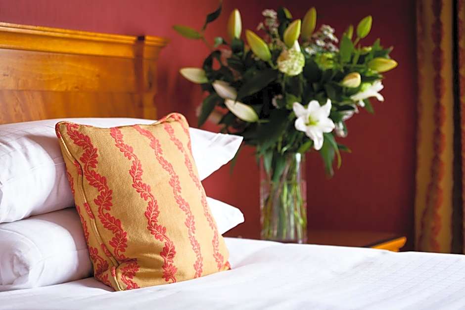 Luxuriously decorated room with a separate bath and shower in the spacious marble en suite.
